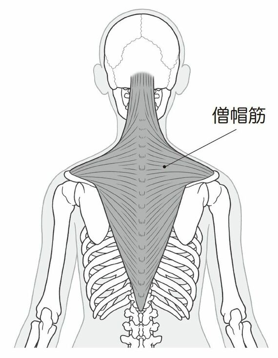 肩から首にかけて広がる大きな筋肉で、頭を支えたり肩を動かしたりする役割があります。姿勢のくずれや精神的な緊張でこわばりやすく、それが首の後ろや肩の重だるさにつながります。