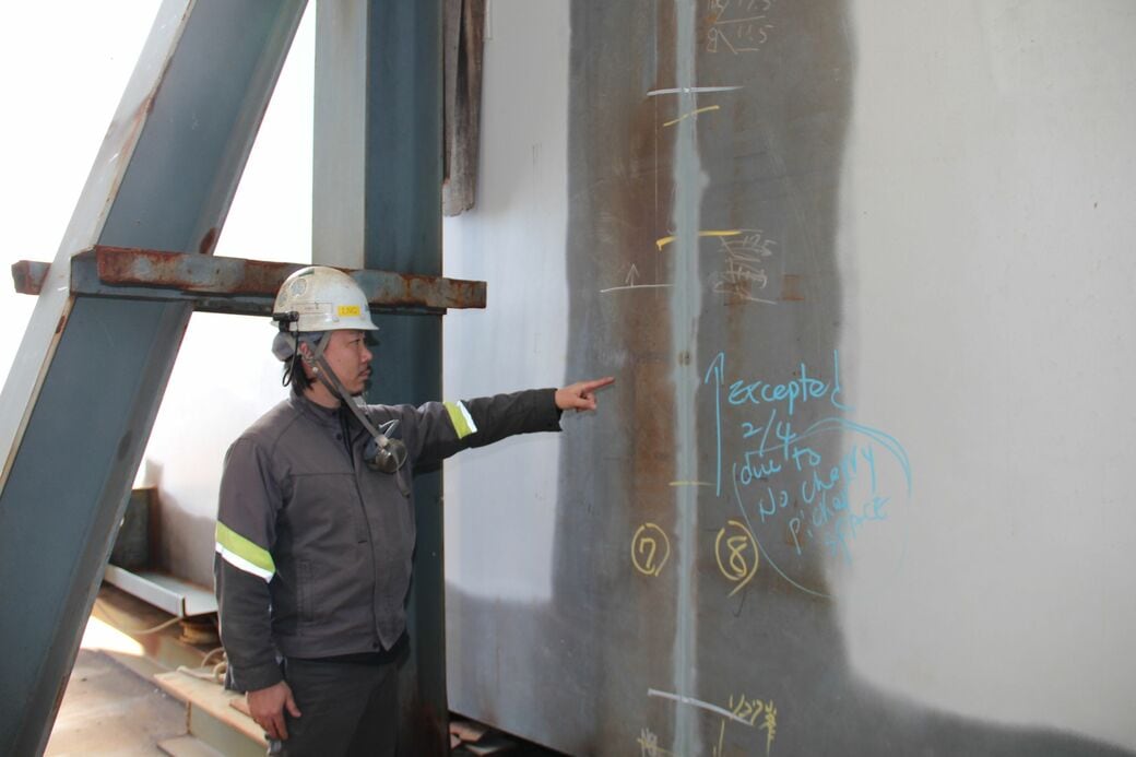 作業は2人一組で進める。「自動溶接でも人の監視は不可欠で、品質は最後まで人が担保する」。そう語る寺嶋さんが今取り組むのは、環境負荷の少ない新型自動溶接機の導入だ。