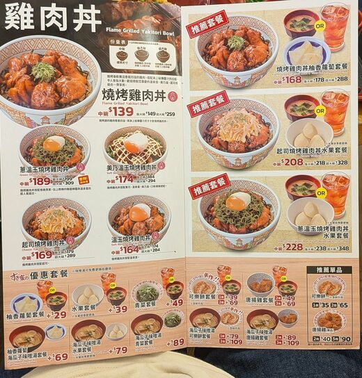 日本のすき家には現在は無い鶏肉丼。日本には一時期「炭火やきとり丼」が展開されていたが、鶏肉という意味で言えば、それに近いラインナップとなる。