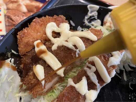 さらに、ソースだってかけ放題だ。誰か私を止めてくれ。ソースとマヨネーズを受け止めても、チキンカツが負けない。