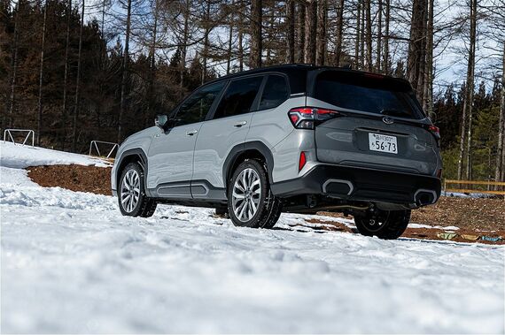 フォレスターの特徴について聞くと、「機械式AWDを採用しているところです。プロペラシャフトで、フロントのパワートレインと後輪をつないでいます。それにアクティブトルクスプリットAWDのACT-4を組み合わせています」とスバルの開発者は言う。