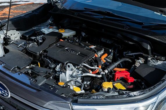 昨今は、機械式プロペラシャフトを使っていない4WD車が増えているが、スバルではハイブリッドモデルでも、あえて機械式を採用している。