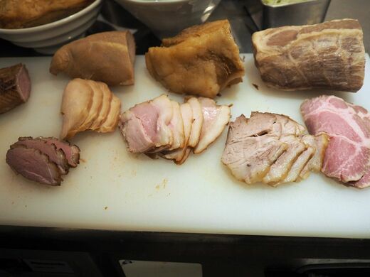 チャーシューは5種類。肩ロース、豚もも肉、豚の腕肉、鳥胸肉、鴨胸肉を使う。煮卵にもひと手間加える。ウイスキーに火を入れてアルコールを飛ばした後、しょう油などを合わせたもので煮る。ハさんが作り上げたオリジナルの味を求めて、連日常連で賑わう。