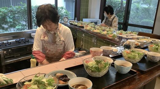 勝子さんの運営する寮では、スタッフは8人雇っており、1日4人体制だ。朝昼夜それぞれに一人ずつのスタッフと掃除スタッフが配置され、さらに月に2回、東京から3人の娘が手伝いに来ている。