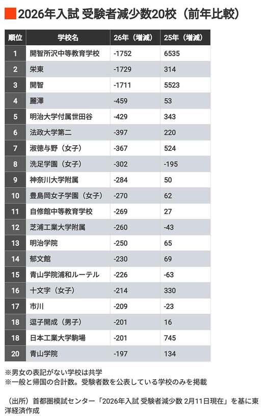 26年度から開始される予定の全国的な高校授業料の「実質無償化(所得制限撤廃)」で、今後神奈川県を含めて、東京以外の学校の受験者数が増加に転じるのかどうか、注目したいところです。