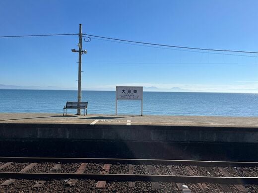 島原鉄道は、1911年開業の鉄道会社で、現在は諫早駅と島原港駅の43.2キロを結ぶ路線を運行しています。穏やかな有明海沿いを走る風光明媚な鉄道で、近年、「海に最も近い駅」の1つとして人気急上昇中の「大三東駅」(島原市)で下車するシーンが印象的です。