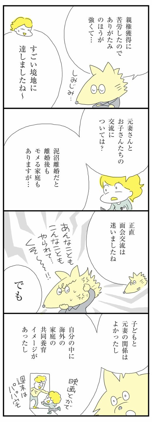 ライフ #ほしいのは「つかれない家族」 前の記事 次の記事 「不倫現場直撃→即別居」 妻の不倫で泥沼離婚「シンパパ」が語る複雑な"胸中" なぜ?もつれた末に父親が親権を取れたワケ 面会交流は迷ったが… 4分で読める 公開日時:2026/02/22 09:00 ハラユキ イラストレーター、コミックエッセイスト フォロー 1/13 PAGES 2/13 PAGES 3/13 PAGES 4/13 PAGES 5/13 PAGES 6/13 PAGES 7/13 PAGES 8/13 PAGES 元妻と子どもの面会交流 次ページが続きます:【育児情報の共有も】 9/13 PAGES 10/13 PAGES 11/13 PAGES 12/13 PAGES 13/13 PAGES