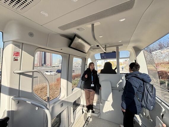 ここからはいったん、屋外に出てリアルな体験へ。お台場地域を走行しているe-Paletteに乗車した。