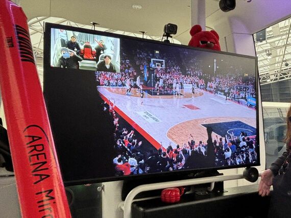 アルバルク東京の試合が終わった後、試合会場から駅までの移動時間を使い、車内の50インチモニターで選手とファンがコミュニケーションできるというもの。