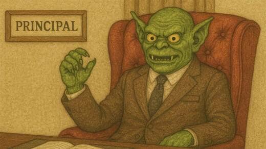 本書で多く登場するのが、校長をモデルにしたパワハラ系妖怪だ。