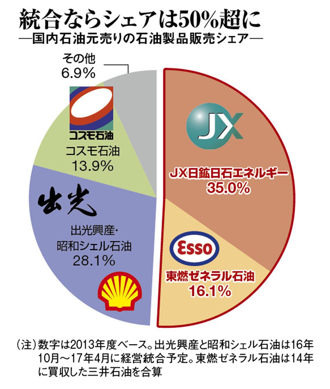 ただ、今後の統合へ向けた課題は、二つ残る。一つは両社が統合すれば、国内の石油製品の販売シェアが約51%(13年度)と、過半になること。公正取引委員会に認められるかが焦点となる。
