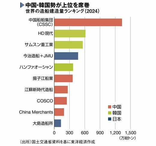 もっとも、その世界シェアは6%程度で、25%近い中国船舶集団(CSSC)など中韓勢の背中は遠い。