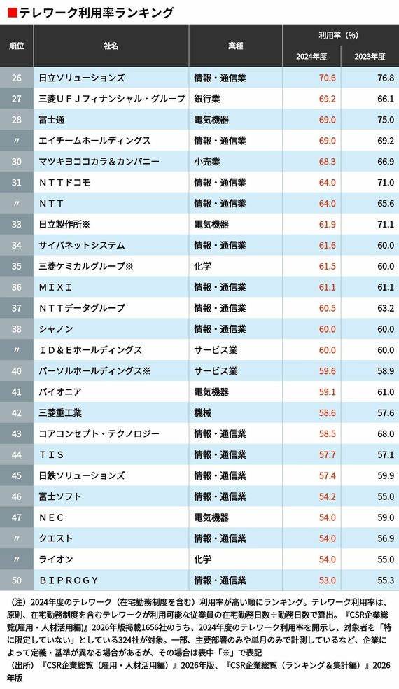 電通グループなど少しずつ出社に回帰する企業も…「テレワーク利用率」が高い企業ランキングTOP100