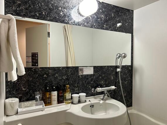 浴室には、シャンプー、コンディショナー、ボディソープ、フェイス&ハンドソープ、歯磨きセット、シェーバー、ボディスポンジの備え付けがあり、手ぶらで利用できるのがうれしい。