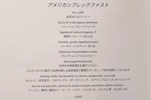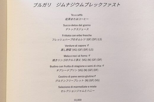 ライフ #チェーン店最強のモーニングを探して 前の記事 次の記事 「1泊30万超え」「眼下には東京駅の線路とビル群の絶景」はまさに貴族の食事!ブルガリホテル東京「1万円モーニング」に大感動の朝 11分で読める 公開日時:2026/02/28 06:15 大木奈 ハル子 ブロガー・ライター フォロー 1/8 PAGES 2/8 PAGES 3/8 PAGES 4/8 PAGES メニュー表はこんな感じ メニュー表で見るとこんな感じです。 ブルガリホテル東京の朝食セットメニュー(写真:筆者撮影) 次ページが続きます:【目で愛でるだけで幸せになる】 5/8 PAGES 6/8 PAGES 7/8 PAGES 8/8 PAGES