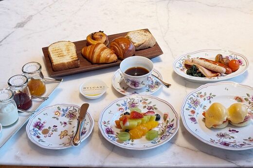 今回は、卵料理はエッグベネディクト、飲み物は紅茶とデトックスジュースを選びました。デトックスジュースに使用されているフルーツは「りんご、ジンジャー、レモン、ココナッツウォーター、リクポン、ぶどう、しそ、ローズマリー」。