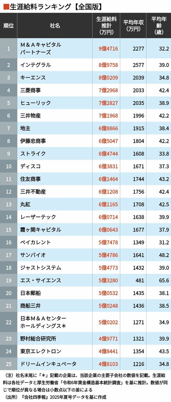 1位は9億円超!生涯給料が高い企業ランキング 5位はヒューリック、4位は三菱商事、ではトップ3は?