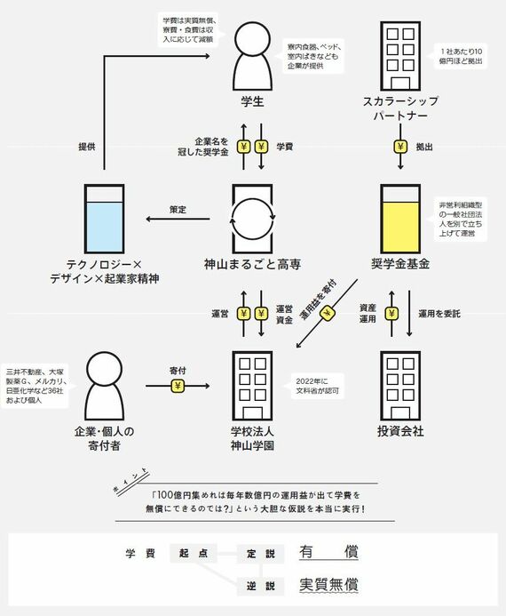 特に注目すべきは、学費無償化を可能にするために設立された奨学金基金。この基金に拠出する企業は「スカラーシップパートナー」と呼ばれ、その仕組みは日本初の試みとして高い関心を集めている。
