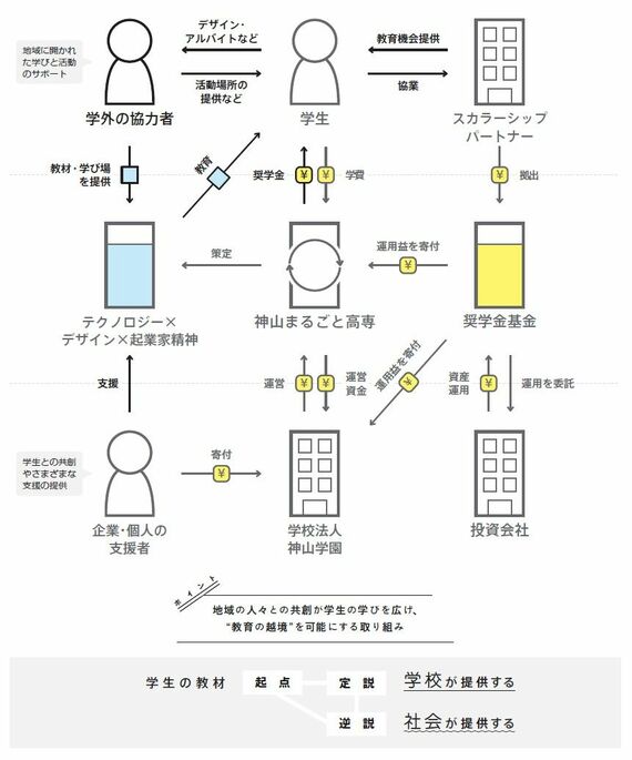 学校の教育活動を学校スタッフのみが担うのではなく、学生たちの興味や関心に応じた人をつなげることで、社会全体が未来世代の教育に関わることができるが、神山まるごと高専はその「ハブ」となり、学生の学びの成果は地域や支援者にも還元されつつある。