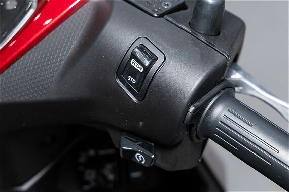 また、走行モードには、通常の走行に対応する「スタンダード(STD)モード」に加え、モーターの出力を抑え省エネ走行に寄与する「イーコン(ECON)モード」も用意。切り替えは右ハンドルにあるスイッチで簡単に可能だ。とくに、イーコンモードは、航続距離を伸ばすだけでなく、スクーターに初めて乗る人でも扱いやすく、安心感のある出力特性を体感できるという。