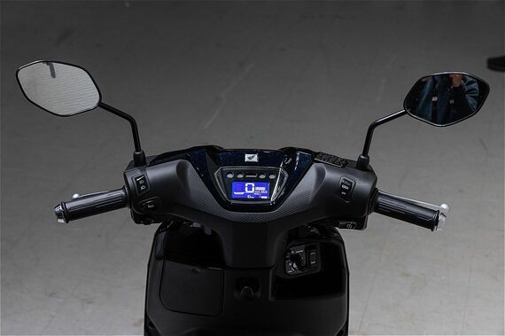 ただし、取材の会場で実際にアイコンe:にまたがってみたが、足つき性ではディオ110ライトのほうがややいいような印象だった。理由はシート形状の違い。アイコンe:のシートは幅がかなり広いのに対し、ディオ110ライトのシートは先端部を絞っていることで、足を地面へ出しやすいのだ。