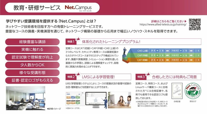 また、アライドテレシス社は全国に拠点があるため、地方のエンジニアでも受講しやすい体制を整えていただけることも、全国均一の品質を目指すわれわれにとっては、重要なポイントでした。
