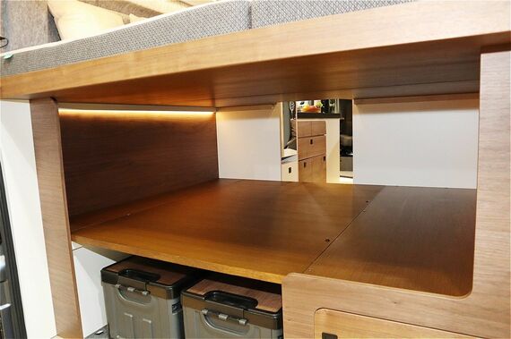 なお、常設ベッド下のラゲッジスペースには、オプションで棚板の上にベッドマットを追加することも可能となった。長さ1770mm×幅1350mmとあまり広くないが、たとえば、小さな子供やペットなどが横になれるサイズを確保している。