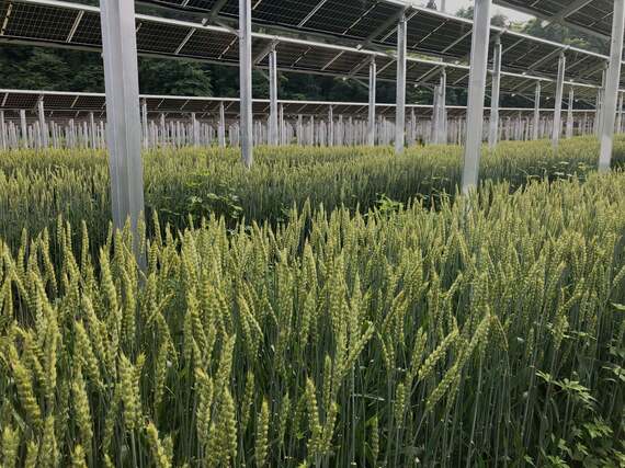 私は小麦の収穫時に取材に行ったが、大内さんが運転するコンバインが営農型ソーラーの下に悠々と入り、小麦を刈り取っていった。