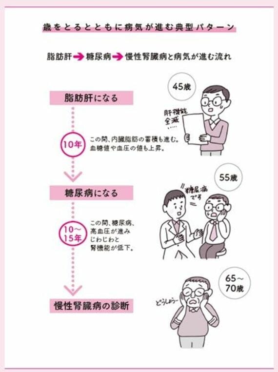 脂肪肝を放っていると、いずれ慢性腎臓病になる理由 「脂肪肝→糖尿病→慢性腎臓病」の恐怖のドミノ倒し