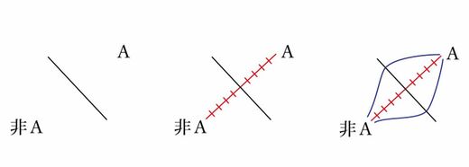 「賢くない(非A)」と「賢い(A)」という状態を考える場合、左の図は、両者を質的に異なるものとして区別する立場――例えば、「極端な生まれつき主義」のような立場を表します。