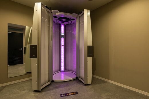 日焼けができるタンニングマシン。大会に向けて肌を焼きたいボディビルダーに好評だ(写真:フィットイージー提供)