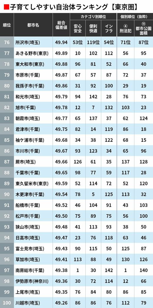 ※ランキングの対象自治体は、東京圏(東京・埼玉・千葉・神奈川)の142市区(都心3区〈千代田区・中央区・港区〉は除く)。 大阪圏(大阪・京都・兵庫・奈良)は89市、名古屋圏(愛知・岐阜・三重)は73市。