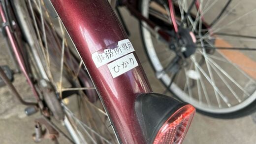 「社用車やフォークリフトには、1台1台に名前がついてるんですよ。この自転車は『ひかり』。『こだま』と『のぞみ』もどこかにあります」