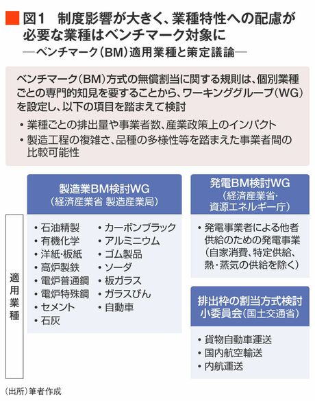 エネルギー多消費産業は本制度の影響を受けやすく、その業種特性に配慮する必要があるため、ベンチマーク方式が採用された。省令により、26年度からの制度では、図1に示す業種がベンチマーク対象に指定された。