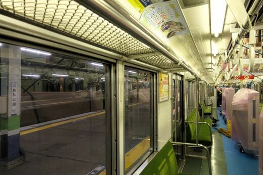 昼間に車内に運び込んでおき、深夜になるのを待って設置する駅まで列車で運搬。終電から始発までの限られた時間内で一気に据え付ける。ホームドアの設置にはよく使われる手法だ。