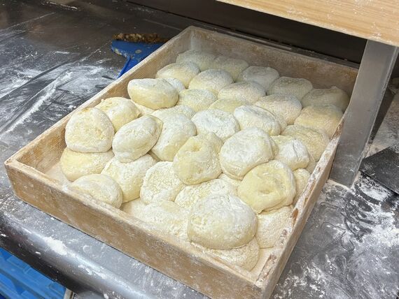 「使う前に、スタッフが手で触って必ず確認しています。発酵の進み具合は気温や湿度でも変わりますから。最も気にしているのは生地の硬さですね。触れてみて、万全の硬さかどうか」