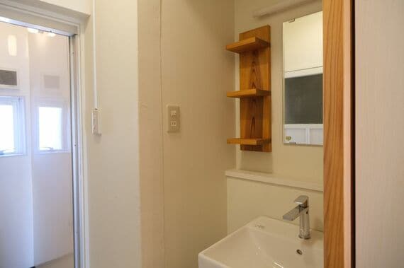 プランの中には、二宮町に隣接する小田原市の杉材を使ったリノベ住戸もある。床材は小田原杉無垢フローリングで、小田原杉のオリジナルキッチンや引き戸もあり、豪華仕様だ。小田原杉を使い、地域産業にお金が循環する発想も組み込まれている。