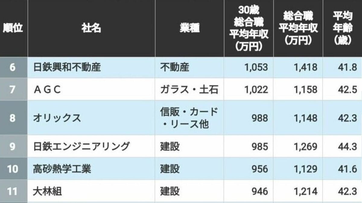 上位7社は30歳で1000万超