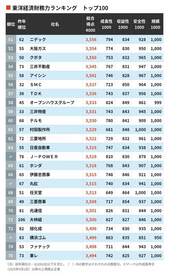 財務力が強い上場企業ランキング100 3位スズキ、2位SUBARU、では1位は?