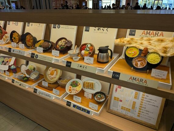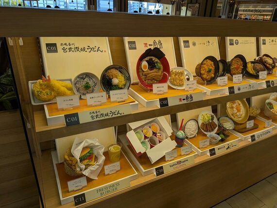 入り口には各店舗のメニューサンプルが!(写真:筆者撮影)