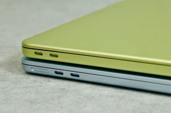 ポートはUSB-C×2とヘッドフォンジャックのみ。M1のMacBook Airもそうだったが、USB-Cの1ポートを電源に使うと、残りは1ポートになるのは厳しいが、そもそも、外部ディスプレイやSSDなどをたくさんつないで使う人ばかりではない。ここも割り切ったポイントだといえるだろう。
