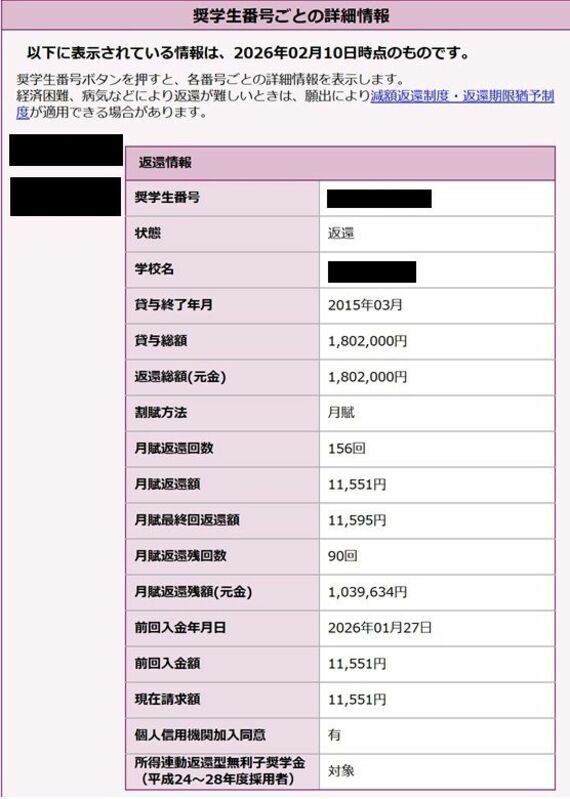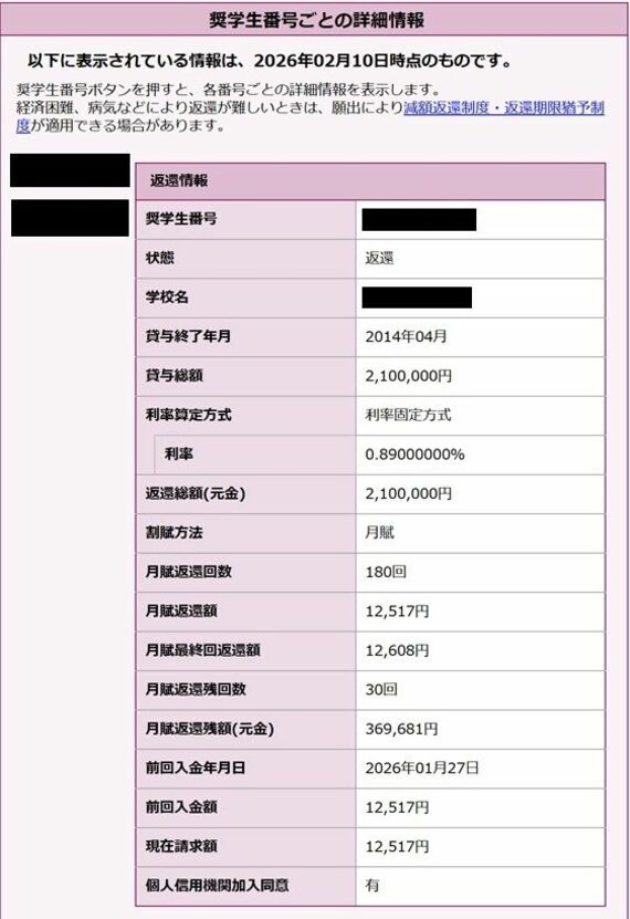 「第二種が残り440万円くらい。第一種はまだ100万円くらいありますが、利子はかからないですからね。これを全部まとめて一括で返済することもできますが、今は貯金がコンスタントに貯まっているので、まだやっていません。これくらいの負債であれば、最悪すぐ返せる。だったら、もう少し貯金しながらのほうが大事だと思います」