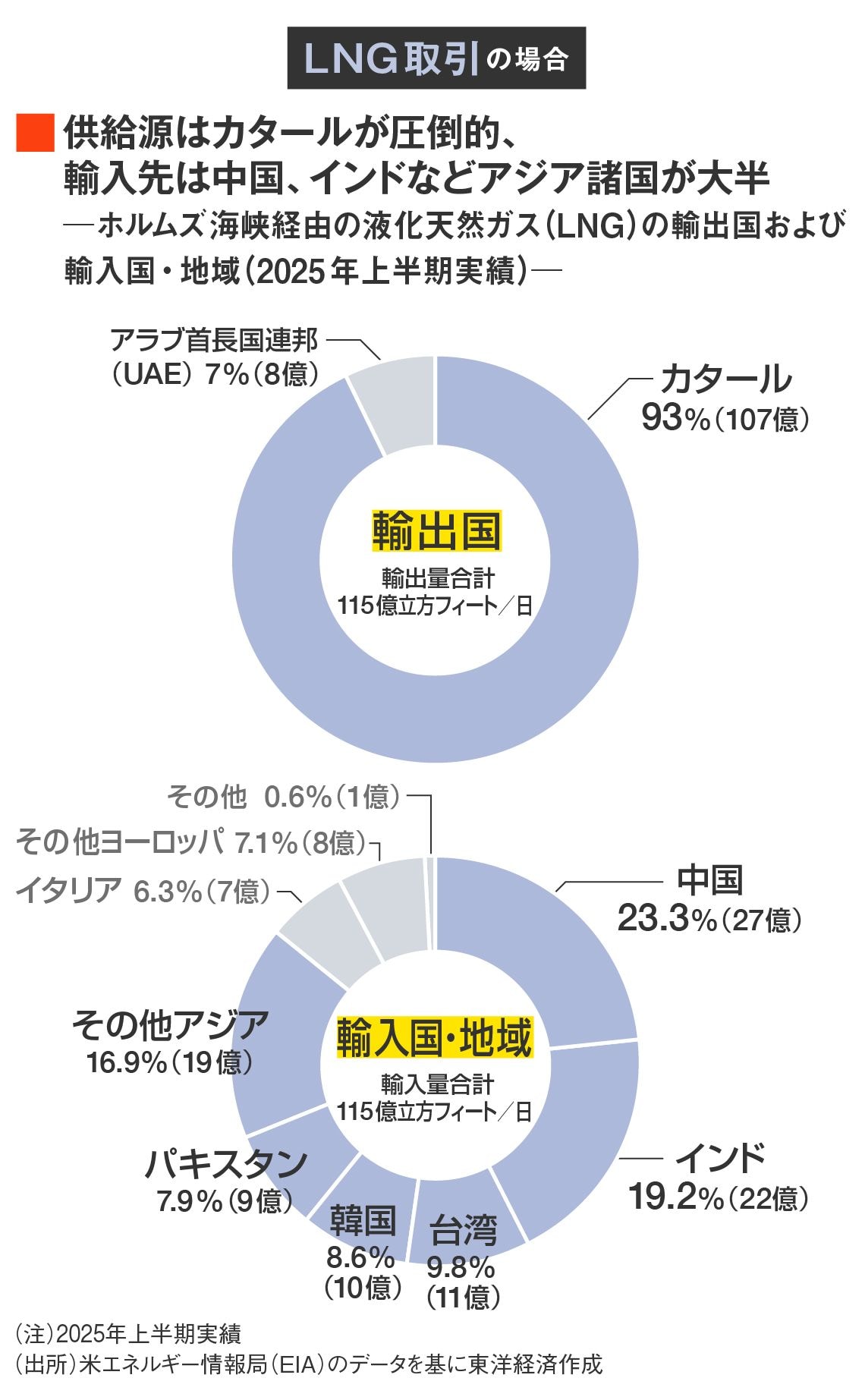 天然ガスのうち、近年は国産ガスの比率が下がり、LNGの輸入比率が高まっていた。しかも両国とも地理的に近い中東諸国への依存度がきわめて高い。