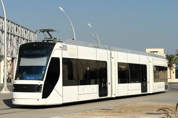 西部にあるのはエデュケーションシティトラムで、学園都市線といったところ。ドイツ製3連接車で運行、専用軌道、路面、高架区間がある。こちらは充電式で、やはり架線がない。充電式トラムは台湾、中国などでも採用、近年開業したトラムでは珍しくない。