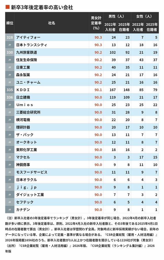 新卒社員が3年後も定着している会社ランキング…定着率100%を実現したのは95社