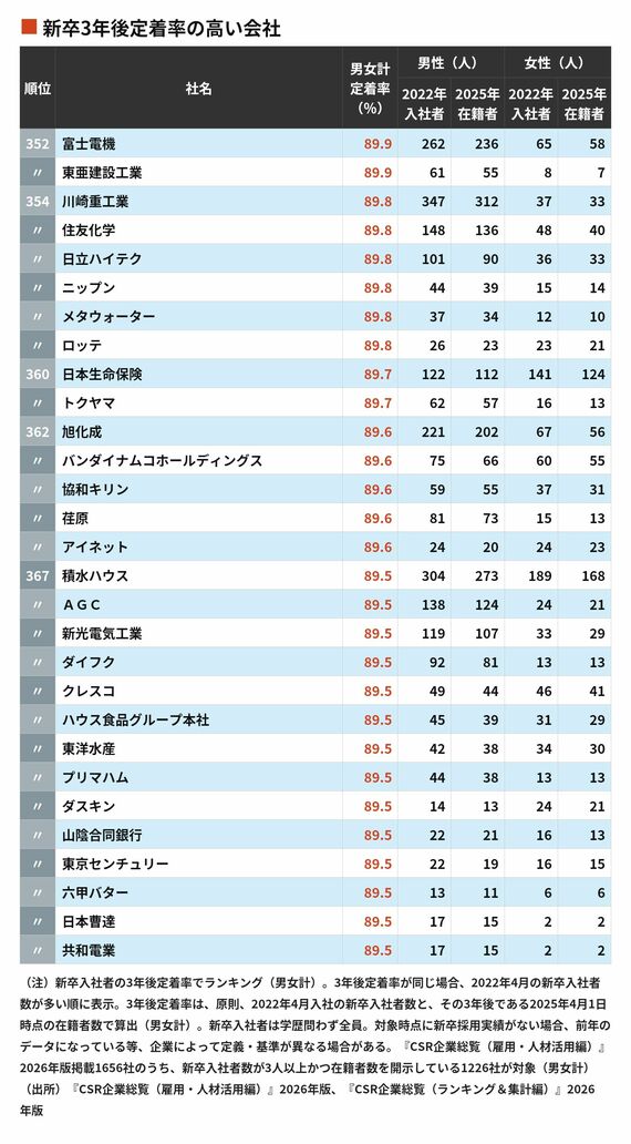 新卒社員が3年後も定着している会社ランキング…定着率100%を実現したのは95社