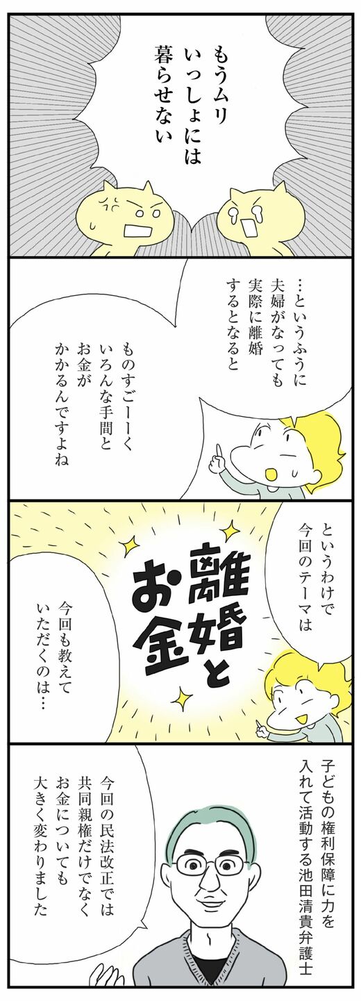 「つかれる家族」の行き着く形のひとつが「別居・離婚」ですが、今回のテーマは「離婚とお金」。民法改正によって何が変わったかについて、前回につづき、池田清貴弁護士にお話を伺いました。