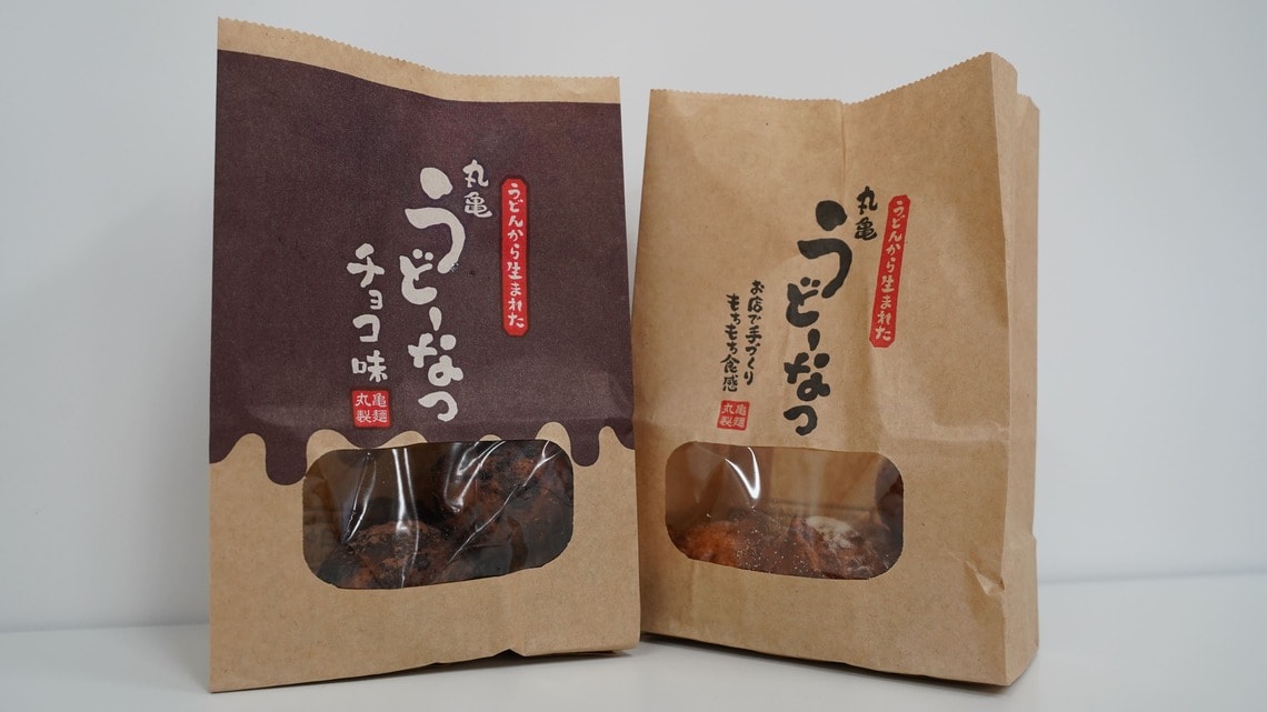 うどんを注文するカウンターを進み、天ぷらが並ぶエリアとレジの間に小さな紙袋が並ぶ。その紙袋の中身が、丸亀製麺で初のスイーツとなる「うどーなつ」だ。