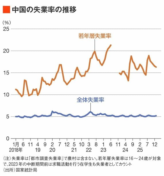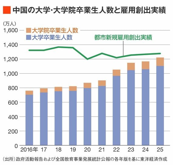 だが、コロナ後は卒業生の数に見合う雇用の提供が困難になっていく。中国政府が発表する都市新規雇用創出実績は1200万人強で、大学卒業生数とほぼ同数だ。景気悪化だけではなく、大卒の増加が就職難につながっている。