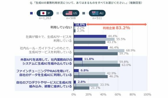 しかし、セキュリティ対策の実態は追いついていません。同調査では、データ露出などのリスクが懸念されるAIサービスに対して「技術的な調査・監視」を行っている日本企業はわずか6.6%にとどまり、62.4%が「未対策」であることがわかっています。